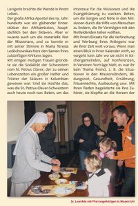 Eingedenk der erschwerten Lebenssituation in der gegenwärtigen Krise kann der Ausspruch unserer seligen Mutter Gründerin, Maria Theresia Ledochowska, der sie bei Hindernissen nicht aufgeben liess, auch Ansporn sein: „Immer heiter, Gott hilft weiter!“